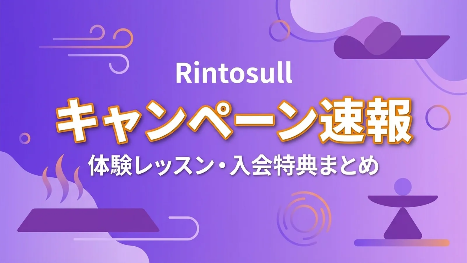 Rintosull(リントスル)の最新キャンペーン情報をまとめました。現在「早春ピラティススタート応援フェア」を開催中で、体験当日入会で入会金0円・登録金0円に加え、3ヶ月間の月額が2,980円(税込)になるお得なフェアです。全国249店舗が対象で、LAVA併設店での体験料金の違いも解説します。
